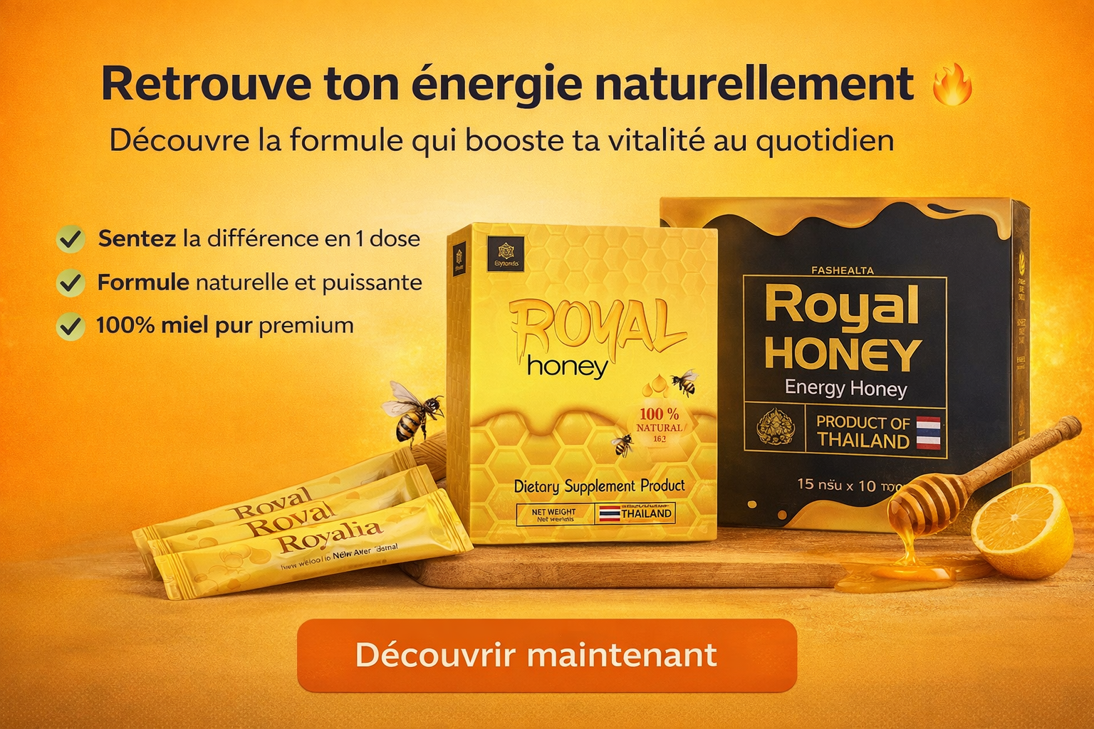 Miel Énergisant Naturel – Formule Premium au Ginseng